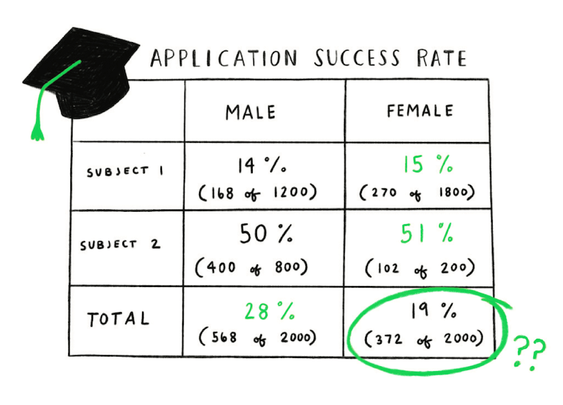 When a trend appears in different subsets of data but disappears or reverses when the groups are combined. | This is critical when trying to understand and quantify how environmental outcomes might impact different groups. During your Plan and Prepare phase, think through the different ways you might aggregate or disaggregate your data and consider what is appropriate for the questions you have. Without disaggregating data by subgroup, analysis can unintentionally gloss over inequity and lead to invisible experiences. On the other hand, when analysts create a subgroup, they may be shifting the focus of analysis to a specific population that is likely already over-surveilled. (Centering Racial Equity Throughout Data Integration) Each decision has its benefits and limitations. No matter what analytical decision you make, it’s important to clearly document the reasoning behind your decision. |
